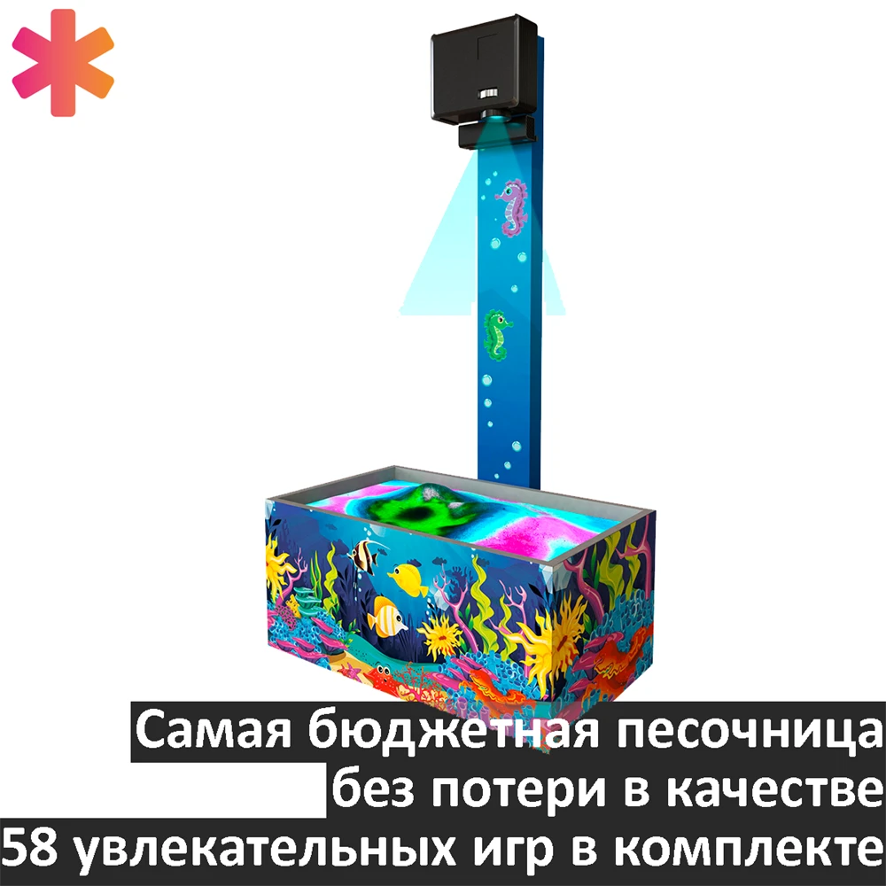 Интерактивные песочницы подходят для детского сада, развивающих центров, начальных классов, библиотек и других детских учреждений, они способствует гармоничному развитию детей, побуждают исследовать окружающий мир, развивают сенсорное восприятие. Интерактивная песочница дает возможность детям поиграть с песком, развивая мелкую моторику, проявлять фантазию, создавая и реализовывая различные ролевые сюжеты.
