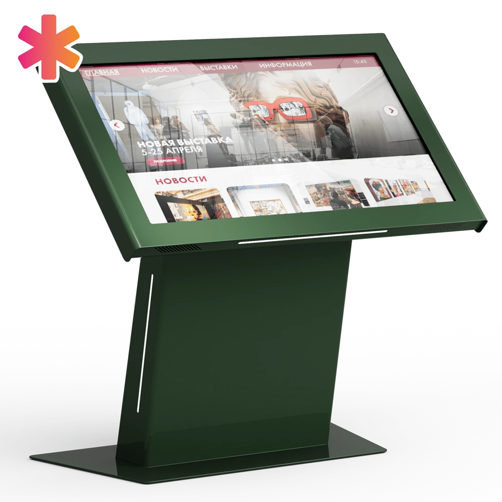 Стильный и надежный стол с регулировкой угла наклона дисплея. Сенсорный экран 4К может управляться 20-ю одновременными касаниями. Исполнен в стильном и антивандальном корпусе, подойдет для любых задач. Дополнен атмосферной, привлекательной подсветкой.
