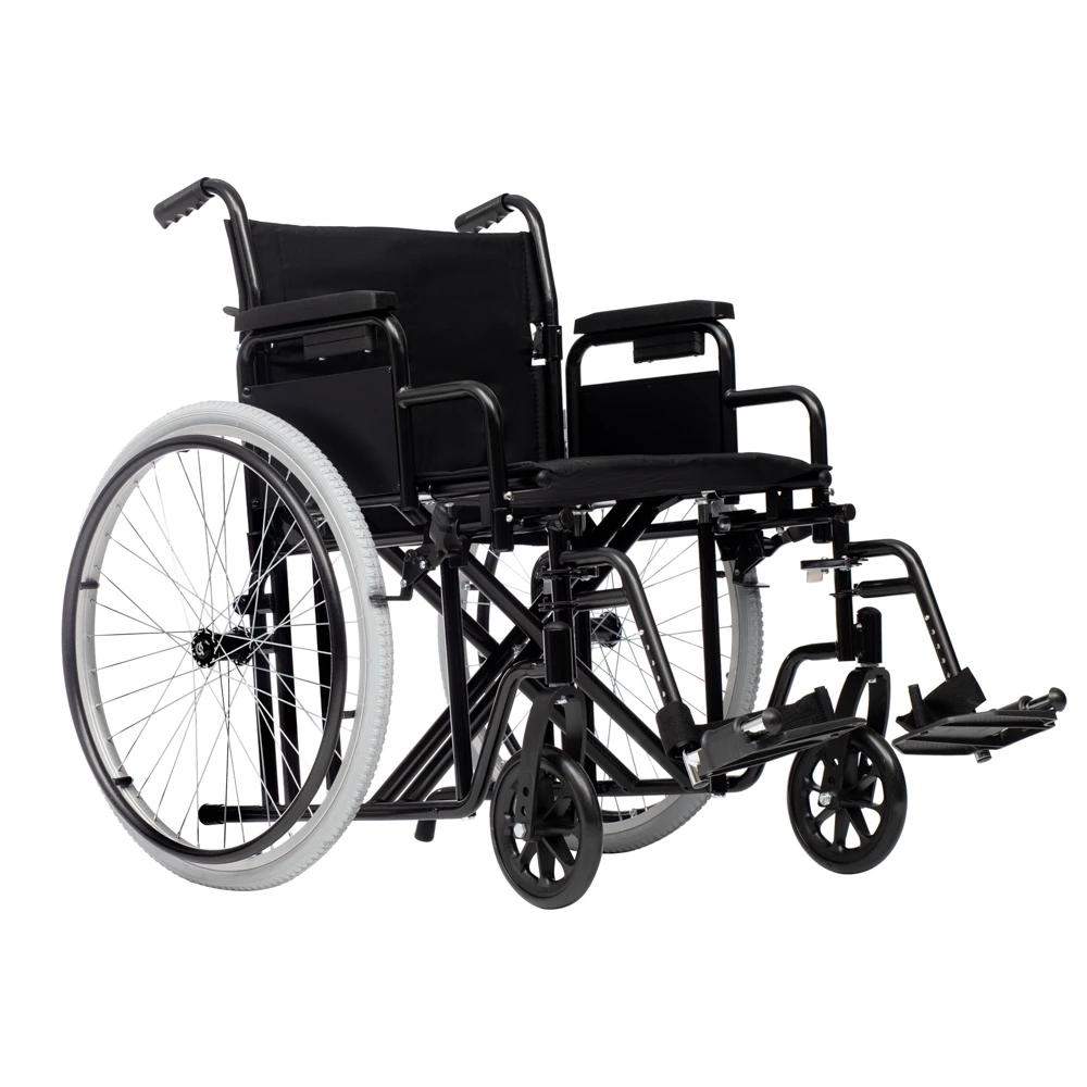 Кресло-коляска для инвалидов Тренд 25 повышенной грузоподъемности с увеличенной шириной сиденья имеет стальную раму с усиленной крестовиной, что обеспечивает прочность, надежность и долговечность конструкции.