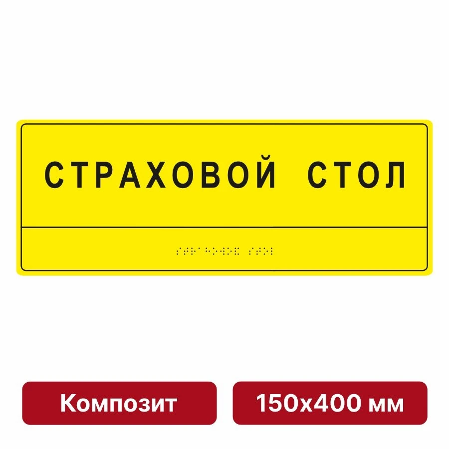 Самый популярный формат. Рекомендуем для поликлиник, библиотек, МФЦ и административных зданий. На нем свободно помещаются: название, адрес, режим работы и шрифт Брайля. - 500х600 мм