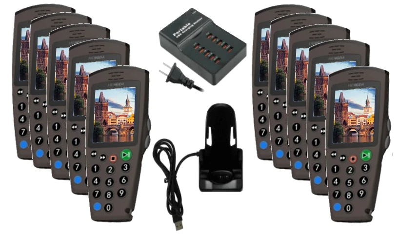 Комплект: 10 аудиогидов С7 + зарядное устройство на 10 трубок + 1 слот для загрузки контента