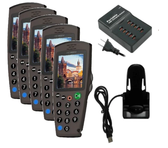 Комплект: 5 аудиогидов С7 + зарядное устройство на 5 трубок + 1 слот для загрузки контента