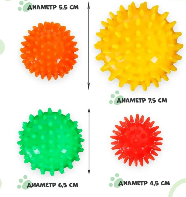 Набор массажных мячей подходит для детей и взрослых. Предназначен для физического воздействия на биологически-активные точки на теле человека для профилактики и лечения ряда заболеваний.