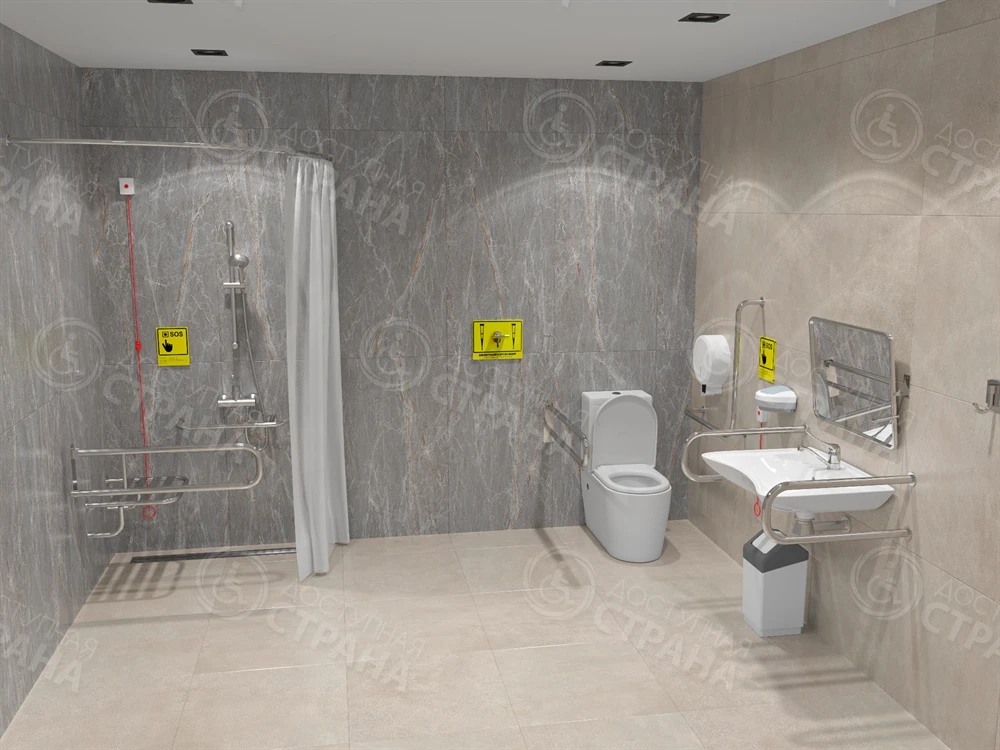 В соответствии с действующими нормами СП 59.13330.2020 санузел должен быть адаптирован для инвалидов специализированным оборудованием (все необходимое учтено в наборе!).