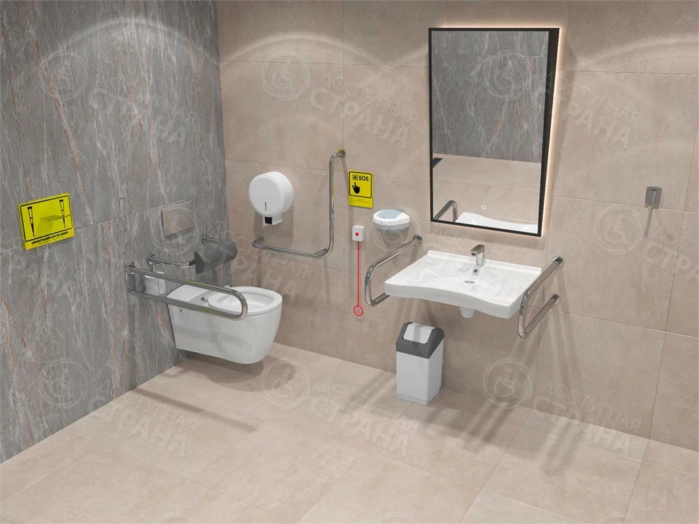 В соответствии с действующими нормами СП 59.13330.2020 санузел должен быть адаптирован для инвалидов специализированным оборудованием (все необходимое учтено в наборе!). Данный набор - возможность для вас не искать в разных местах различное оборудование и не думать подходит ли оно друг другу.