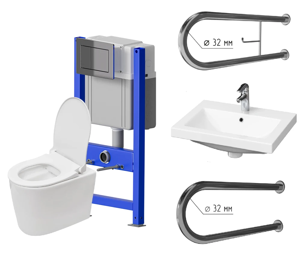 - Унитаз детский подвесной SANTEYA UNITY KIDS с инсталляцией SANTEYA FRAME KIDS и кнопкой смыва из нержавеющей стали SANTEYA STEEL, арт. 9510