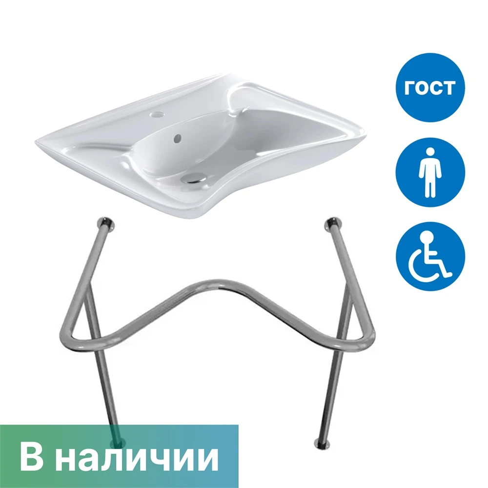 Комплект: раковина для инвалидов Y11 с поручнем с выемкой (арт. 6926, 3215-800)