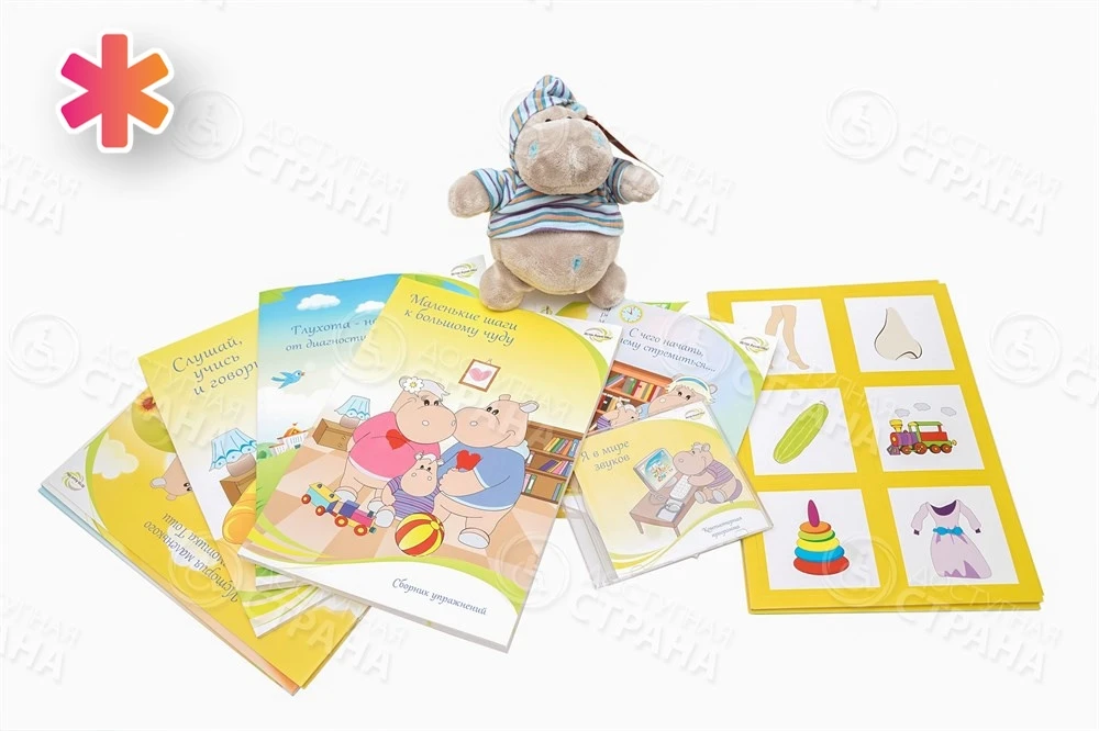 Предметные картинки (60 шт.), Картинки-действия (30 шт.) являются ярким дополнением и необходимым звеном в работе любого педагога с детьми и взрослыми с нарушением слуха. Картинки можно использовать, к примеру, для проведения теста разборчивости слов, как с опорой на слоги, так и без нее, а также - для развития памяти в игровой форме. Предметы на картинках подобраны таким образом, чтобы их названия максимально соответствовали среднестатистическому начальному предметному словарю ребенка. Картинки с изображением действий помогут запомнить первые глаголы и составлять простые фразы, что актуально на первых и основополагающих этапах реабилитационной работы с детьми после кохлеарной имплантации.