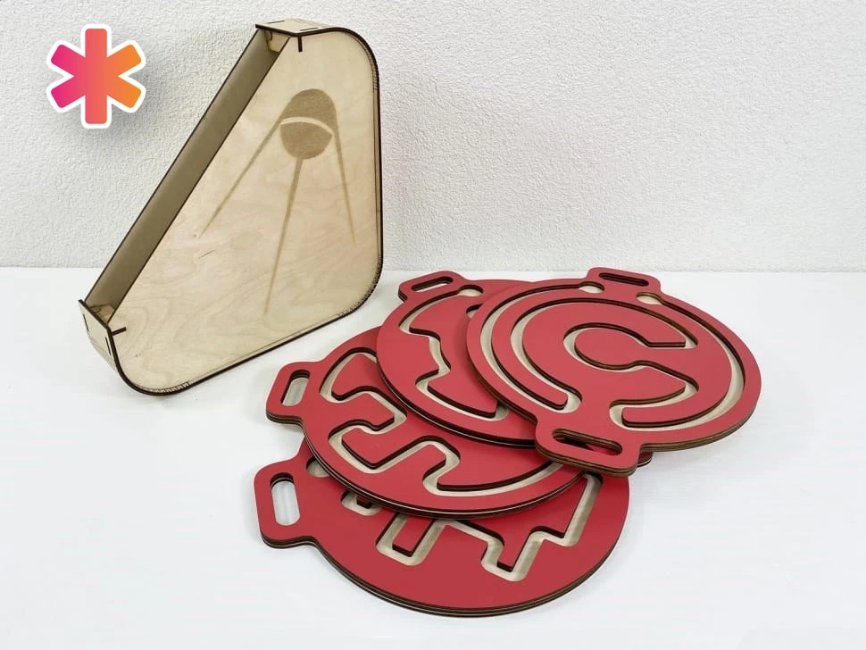 Лабиринты изготовлены из берёзовой фанеры и окрашены стойкими к выцветанию полиуретановыми красками без запаха. Сверху всё покрыто огнестойким лаком Renner.
