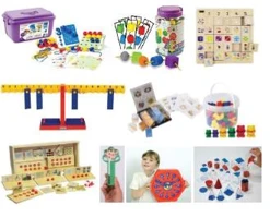 Состав комплекта: дидактический демонстрационный и раздаточный материал разного вида для организованных занятий; наборы для тактильного и визуального восприятия понятий «форма», «величина», «количество», «число» и «цифра», «расположение в пространстве», «время»; пособия для счета на слух и на ощупь; наборы для сравнения форм и величин; пособия для наглядного представления состава числа, операций «сложение» и «вычитание»; автодидактические пособия для работы с самопроверкой; математические мозаики и наборы для решения примеров в игровой форме; домино, лото, логические игры; игры-головоломки, наборы для подвижных игр с математической тематикой.