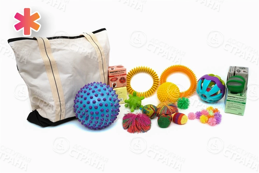 Набор терапевтических мячиков создан для повышения зрительного и тактильного восприятия. Для того, чтобы мячики можно было удобно переносить и хранить, в комплекте к ним идет специальная сумка.
