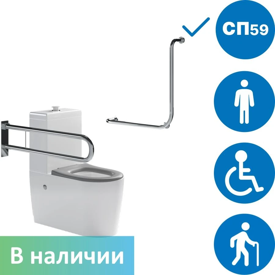 - Поручень для инвалидов L-образный комбинированный по ГОСТ 600х600мм, универсальный, арт. 8055