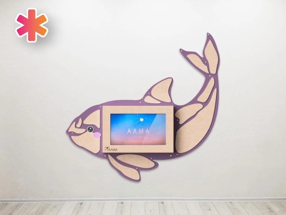 Настенная панель «Косатка» со встроенной интерактивной сенсорной панелью 32 дюйма. Это одновременно декоративное оформление стен и развивающая игрушка, ведь на панели установлен пакет игрового и обучающего ПО.
