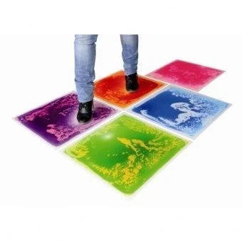 Напольные плитки с жидким разноцветным наполнением. Верхний слой прозрачный ПВХ, основа прорезиненная. Выдерживает большие физические нагрузки, рекомендовано для использования в сенсорных комнатах, детских садах и прочих учреждениях.