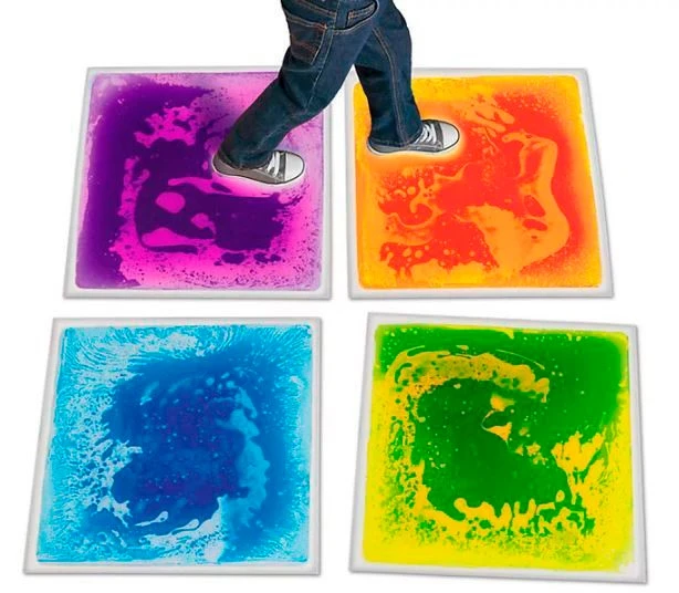 - При нажатии на ковер цветная жидкость внутри плитки плавно перемещается, создавая изменяющиеся узоры, что способствует развитию причинно-следственных связей и удержанию внимания.