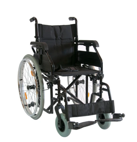 Кресло-коляска инвалидное с ручным приводом предназначена для передвижения больных и инвалидов с частичной потерей функций опорно-двигательного аппарата в условиях помещений и на площадках с твёрдым покрытием как самостоятельно, так и с помощью сопровождающего лица. Кресло-коляска имеет складную поршневую конструкцию по вертикальной оси. Рама коляски стальная с полимерным покрытием.