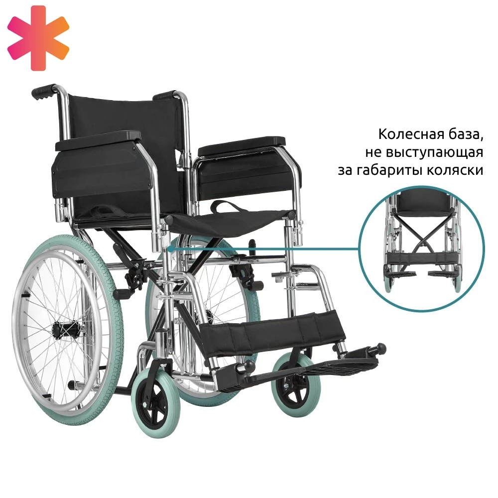 Кресло-коляска инвалидная малогабаритная Home 60 отличается компактными размерами и колесной базой, не выступающей за габариты коляски. Может проходить в узкие дверные проемы.