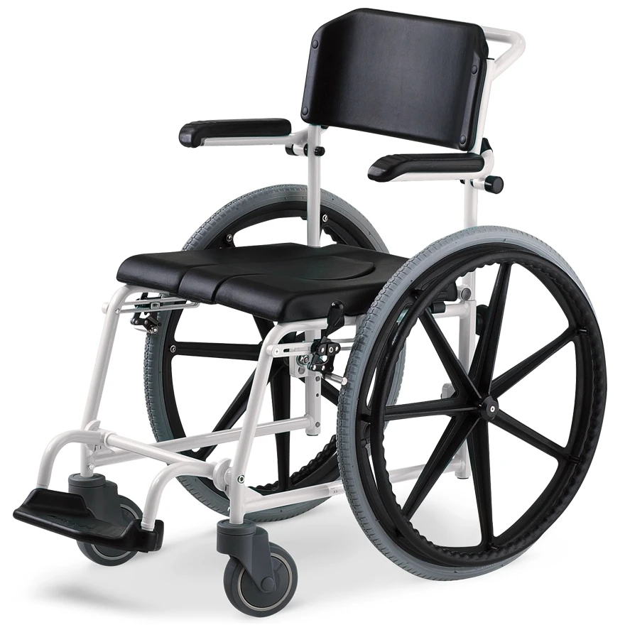 Каркас этой инвалидной коляски для душа полностью изготовлен из коррозионно-стойкого алюминия, поэтому вы можете рассчитывать на ее прочность и долговечность.