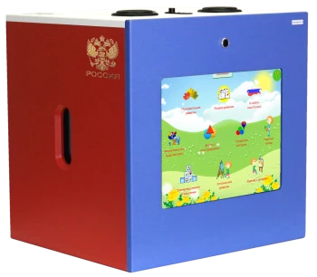 Благодаря оригинальной запатентованной конструкции и небольшим габаритам, этому комплексу патриотического воспитания найдется место в любом, даже в самом маленьком уголке ДОУ или школы. Куб оснащен антивандальным сенсорным монитором и может быть установлен для занятий на столе или на полу (экраном вверх).