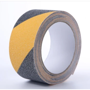 Противоскользящая самоклеящаяся предупреждающая сигнальная лента черно-желтого цвета предназначена для использования внутри помещений для маркировки ступеней и создания эффекта противоскольжения. Также она может применяться для обозначения путей МГН. Лента изготовлена из полиэстера с нанесенным абразивным слоем из карборундовых крупинок. Она легко и надежно прикрепляется к различным гладким поверхностям, включая керамическую плитку, гранит, дерево, металл, пластик, линолеум и ламинат.