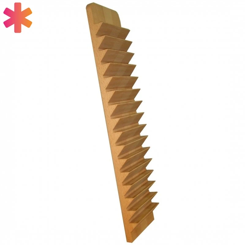 Лесенка из 32 ступенек одинакового размера с возможностью крепления к стене. Применяется для упражнений, восстанавливающих и корректирующих движения пальцев верхних конечностей, плечевого и локтевого суставов у всех возрастных групп пациентов (дети от 5 лет, подростки, взрослые, гериатрические пациенты).