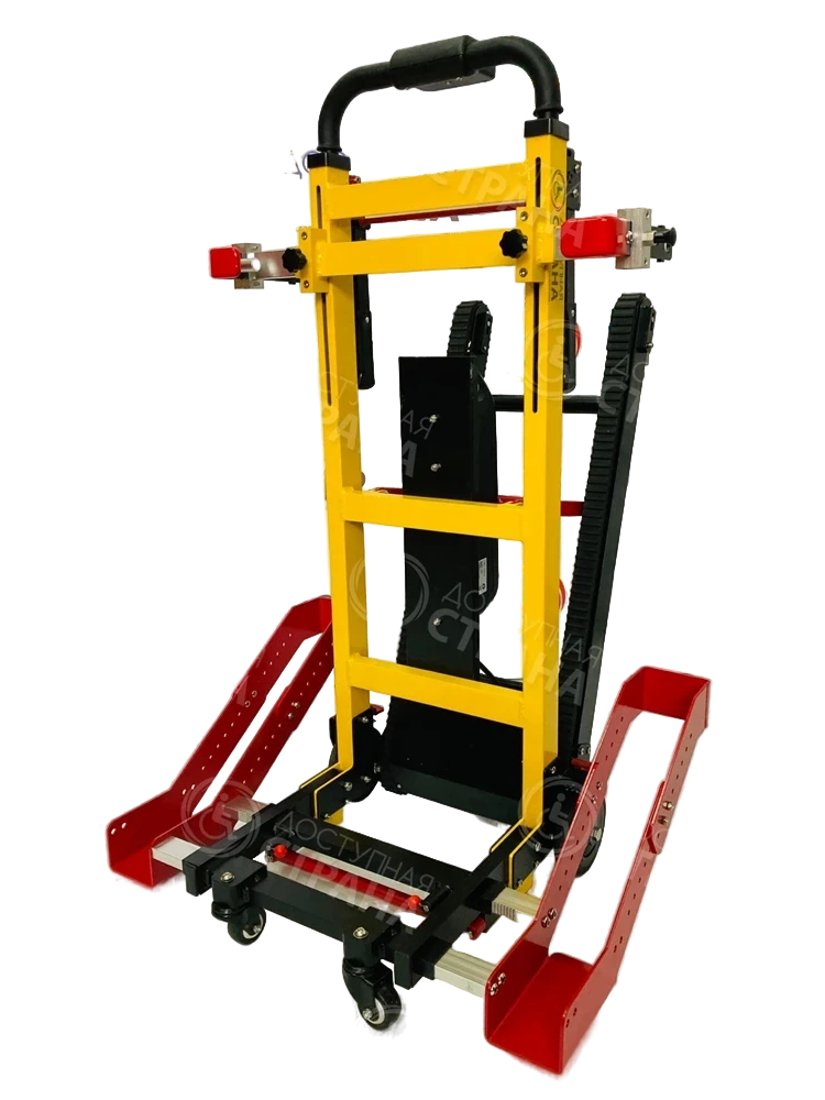 Лестничный гусеничный подъемник для инвалидов для людей, передвигающихся в креслах колясках. Предназначен для перемещения человека на коляске по лестнице вверх и вниз.