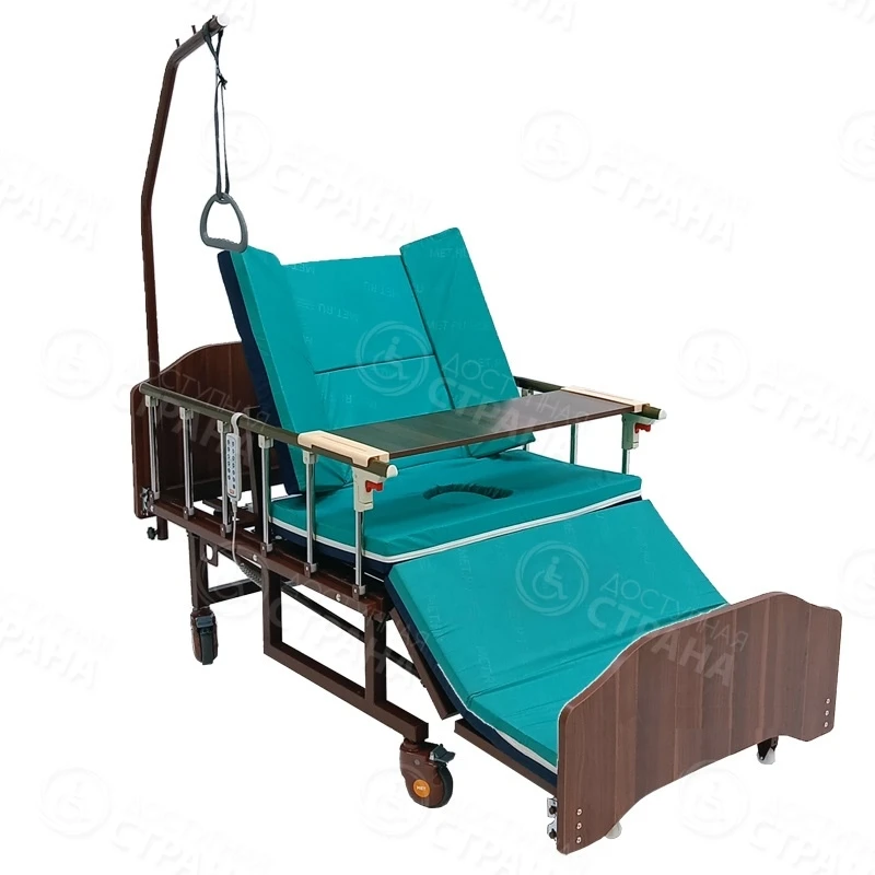 - Электрические регулировки с пульта: можно поднимать голову и спину, опускать и поднимать ноги, управлять туалетным устройством и переворачивать пациента. Если пациент может управлять пультом самостоятельно, то он сможет менять свое положение без посторонней помощи.