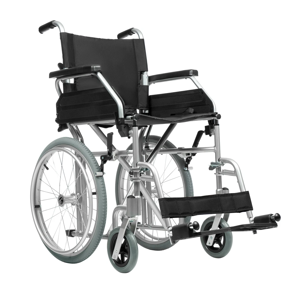 Рама кресла-коляски изготовлена из высокопрочных алюминиевых сплавов и имеет складную конструкцию. Коляска легко складывается и раскладывается без применения инструмента.