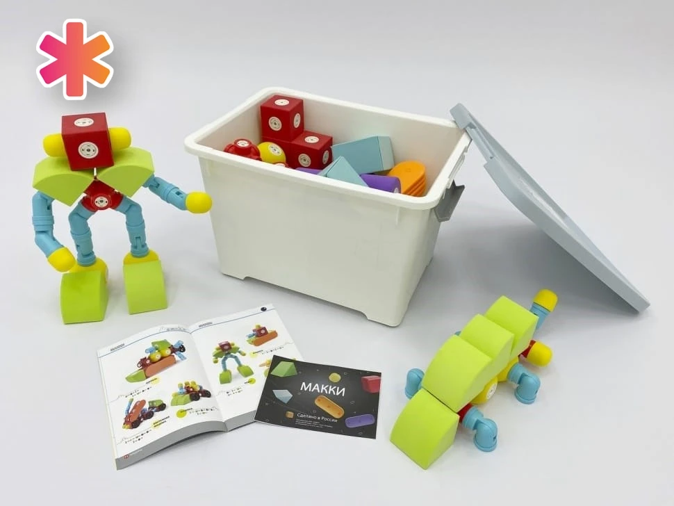 Конструктор «МАККИ 120» — набор цветных магнитных деталей (крупных геометрических фигур с магнитными креплениями), рассчитанный на группу учеников до 16 человек.