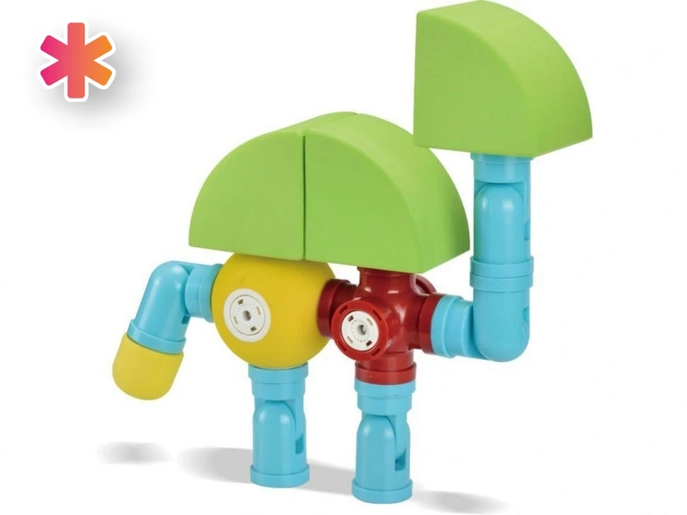 Конструктор «МАККИ 37» — набор цветных магнитных деталей (крупных геометрических фигур с магнитными креплениями). Детали конструктора окрашены в приятные однотонные цвета, со звуковым эффектом погремушки.