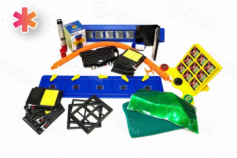 Настенный коммуникатор – предназначен для записи голосовых сообщений. Продолжительность записи 1 голосового сообщения – 20 секунд. В наборе 5 пластин. Размер: 17,5 х 22 см.Подушка с вибрацией – стимулирует осязательное восприятие, оказывает расслабляющее действие. Подушка вибрирует при включении. Размер: 36 х 24,5 х 9 см.