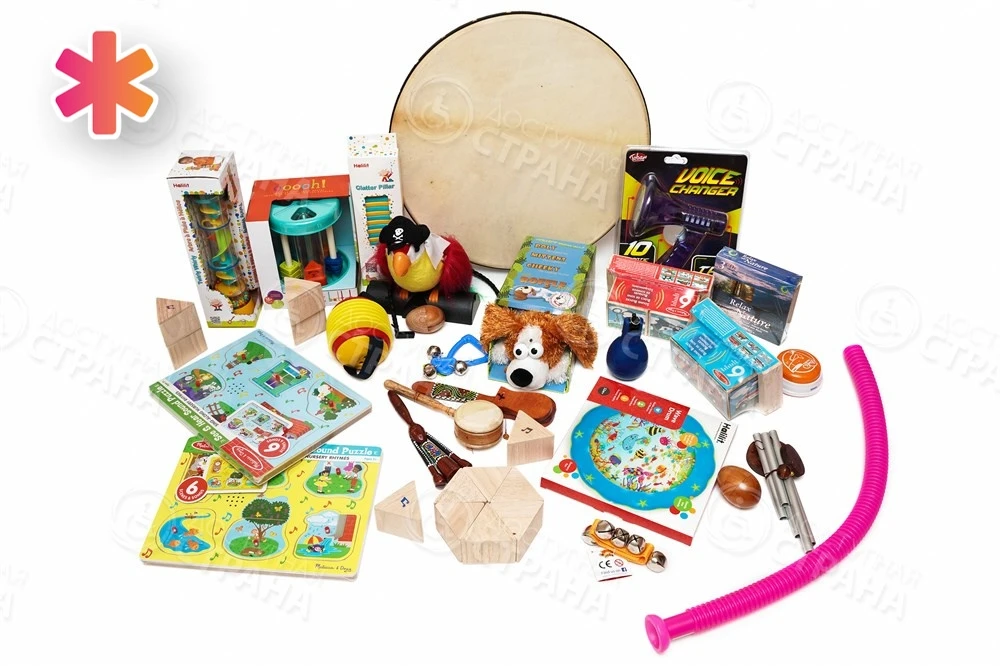 Набор для слухоречевого восприятия для детей с особенностями развития. В комплект входят игрушки со звуковыми эффектами и музыкальными инструментами.