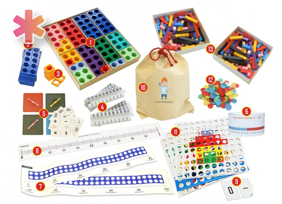 Набор дополнительных рабочих материалов для детей 9-11 лет Нумирошка – хороший выбор для детского сада или оздоровительного центра, где занятия проводятся в группе детей. Данная система поможет детям обучиться базовым математическим навыкам, а также развить усидчивость, мышление, тактильность.