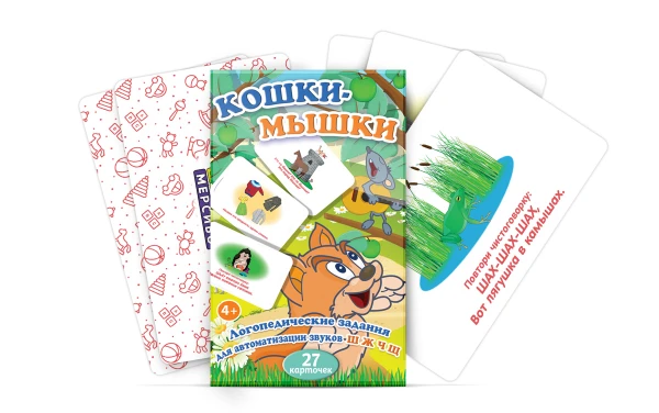 Логопедические упражнения в наборе «Кошки-мышки» помогут закрепить звуки [Ш], [Ж], [Ч] и [Щ] в активной речи.