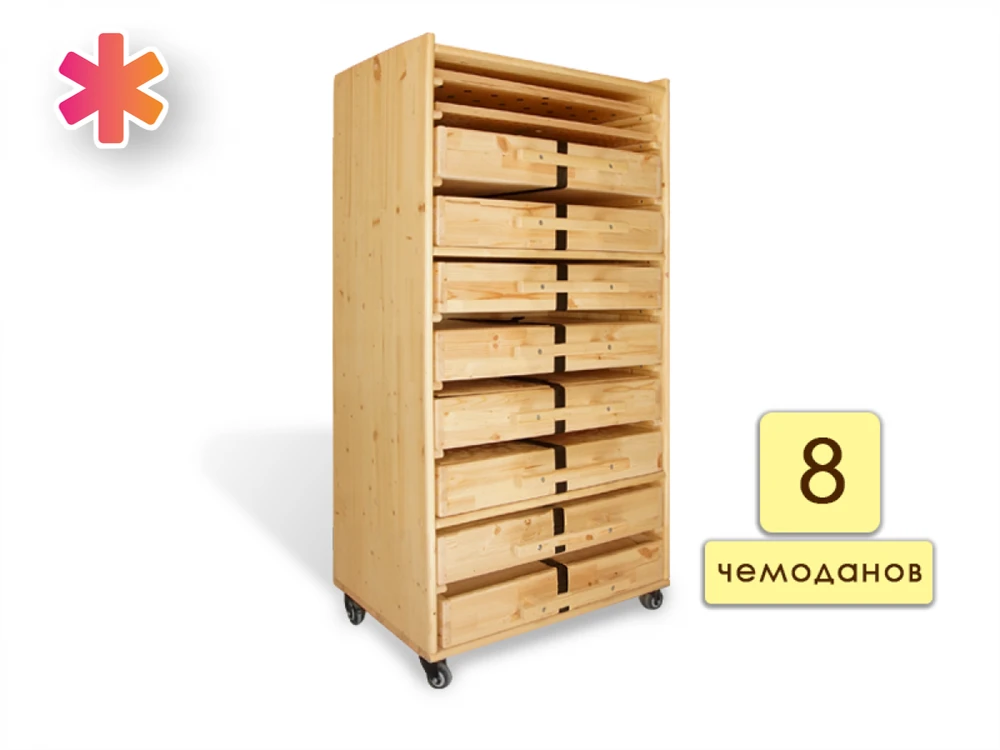 - Мобильный стеллаж с несколькими отделениями. Он снабжен колесиками, поэтому легко передвигается и поворачивается.