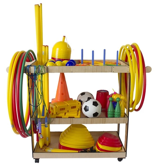 в себя всё необходимое оборудование для занятий спортом с детьми. В комплекте идёт удобная, большая тележка из фанеры, что позволяет