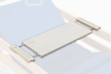 Надкроватный столик из пластика, устанавливаемый на боковые ограждения шириной он 80 до 105 см