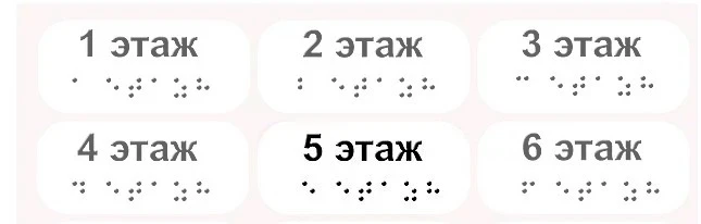 Наклейка на поручень со шрифтом Брайля 30х110 мм, изготовленная из ПВХ пленки используется в качестве тактильного указателя, который предназначен для рельефного обозначения этажей, что позволяет человеку с ограничением зрения понять, на каком этаже в данный момент он находится. Такие модели можно купить у нас с доставкой на дом или непосредственно в компанию.