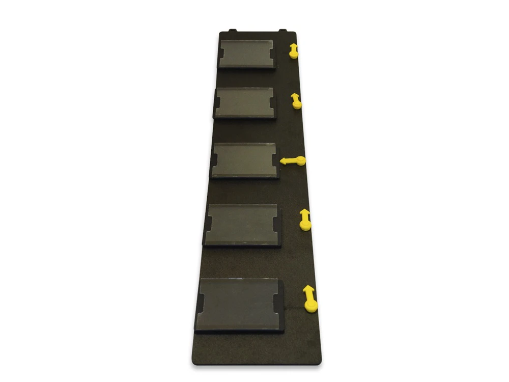 В комплекте 5 горизонтальных ячеек под карточки, рядом расположены стрелки-указатели. Для каждого нового занятия необходимо перевести стрелку на указанную картинку