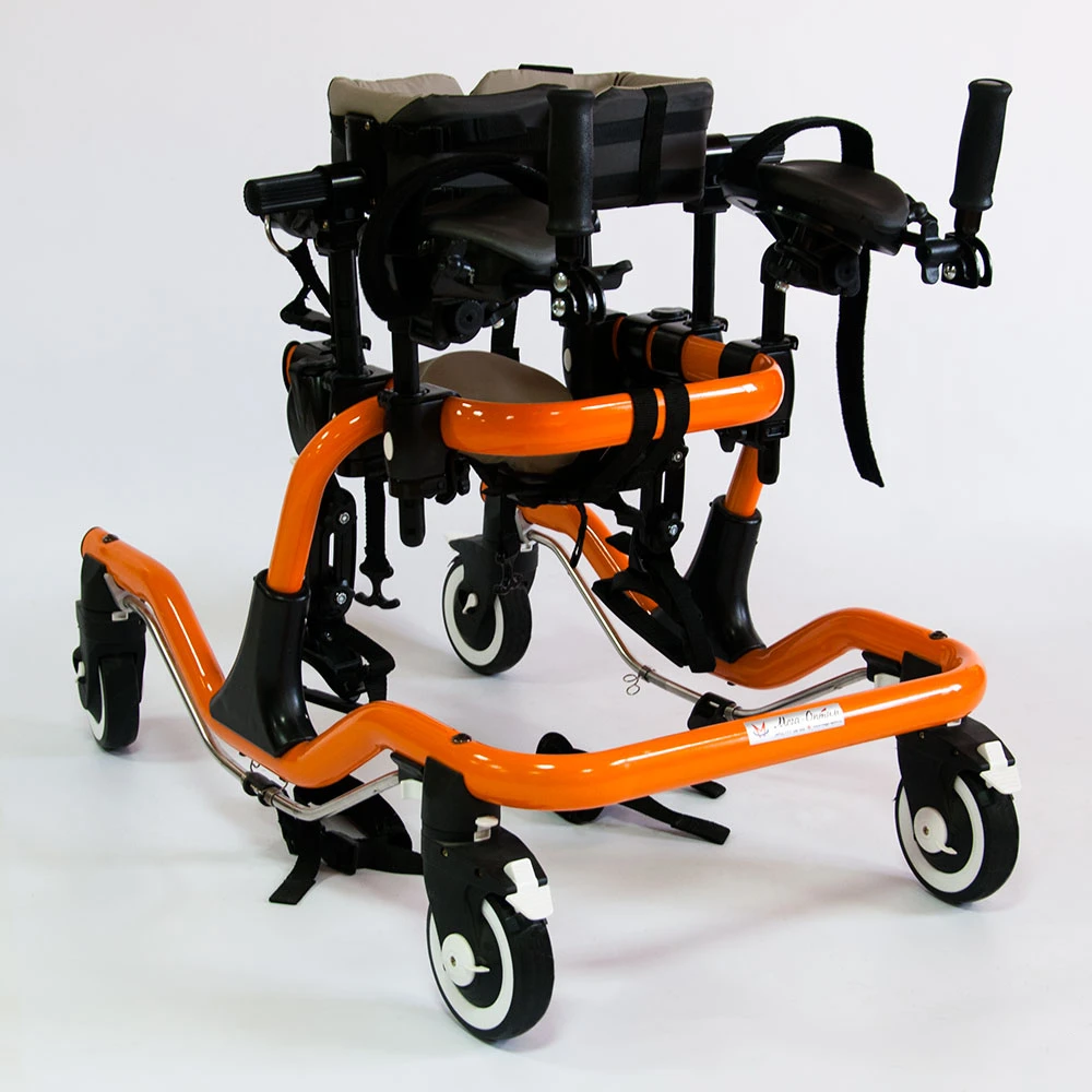 Многофункциональные, модульные опоры-ходунки для развития навыков ходьбы у детей и взрослых с ДЦП, а также пациентов с различными нарушениями функций опорно-двигательного аппарата. Опоры-ходунки оснащены полным набором приспособлений для фиксации различных частей тела в правильном положении. Все приспособления легко крепятся и снимаются, позволяя собирать ходунки, как конструктор, соответственно потребностям конкретного пациента на различных стадиях реабилитации. Все фиксаторы регулируются по нескольким параметрам для максимально точной подгонки ходунков под анатомические особенности пациента. Ходунки выпускаются в трех размерах и могут использоваться как в реабилитационных центрах, так и в домашних условиях.