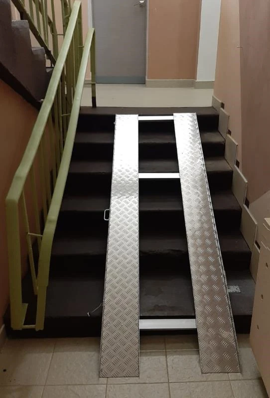 Важно понимать, что официально согласно СП 59.13330.2020 использовать данные пандусы для инвалидов нельзя. (Но, например, для детских колясок можно). Для подъема инвалидов нужно использовать подъемные устройства или стационарные пандусы.