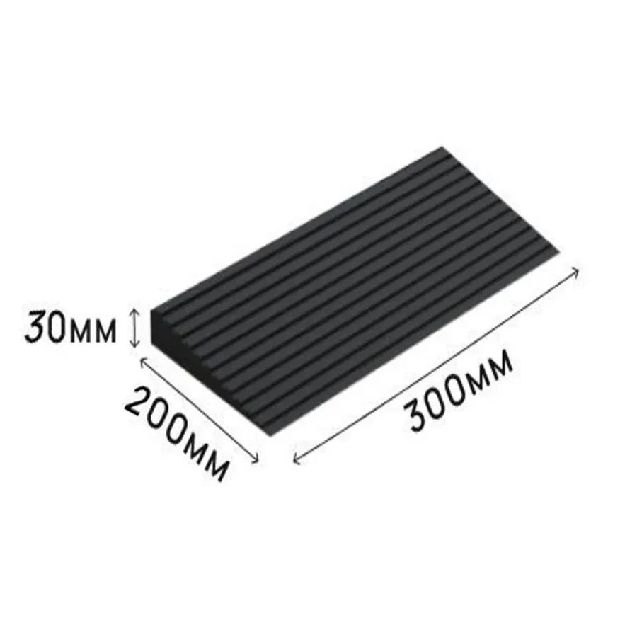 Полимерный пандус ГОСТ 30х200x300 мм изготовлен из термоэластопласта чёрного или серого цвета. Пандусы из эластомеров идеально подходят для использования не только в жилых и общественных помещениях, но и на улице. Этот пандус легко и одновременно плотно прилегает к порогу, обеспечивая ровный и безопасный переход. Пандусы из ТЭП абсолютно мобильны и удобны для переноски.