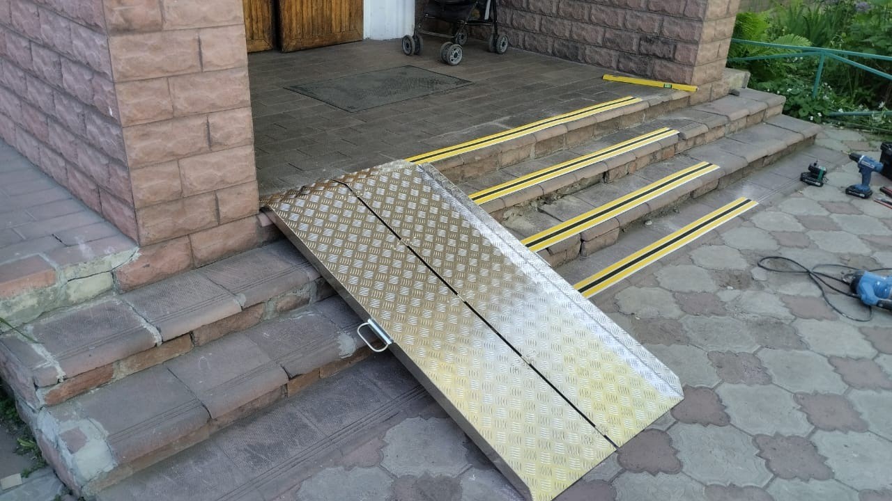 ВНИМАНИЕ! Согласно СП 59.13330.2020 при адаптации входа в здание для инвалидов, возможно использование только стационарного пандуса. Применение пандусов - рамп для адаптации лестницы возможно, если вы адаптируете здание, например, для посетителей с детскими колясками.