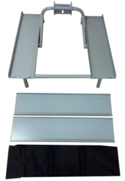 - Расчехлить и поочередно установить пандус в пазы платформы.