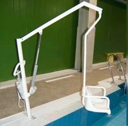 Компактный, крепление подъемника к полу осуществляется с помощью 8 анкерных болтов и, в отличии от аналогов, нет необходимости в большом разрушении гидроизоляции бассейна т.к. нижняя часть плиты основания абсолютно плоская. Подъемник выполнен полностью из нержавеющей стали.