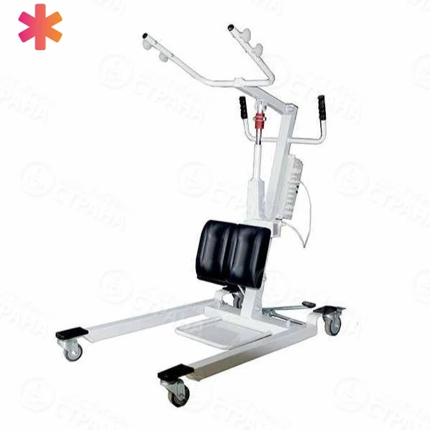 Подъемник позволяет безопасно вертикализировать пациента из положения сидя и перемещать его дома или в условиях стационара. Все детали подъемника изготовлены из углеродистой стали и покрыты прочным полимерным покрытием. Электрический привод, работающий от аккумулятора, обеспечивает простоту использования и плавность перемещения. Регулируемые фиксаторы коленных суставов безопасно и просто адаптируются под пользователя любого телосложения.