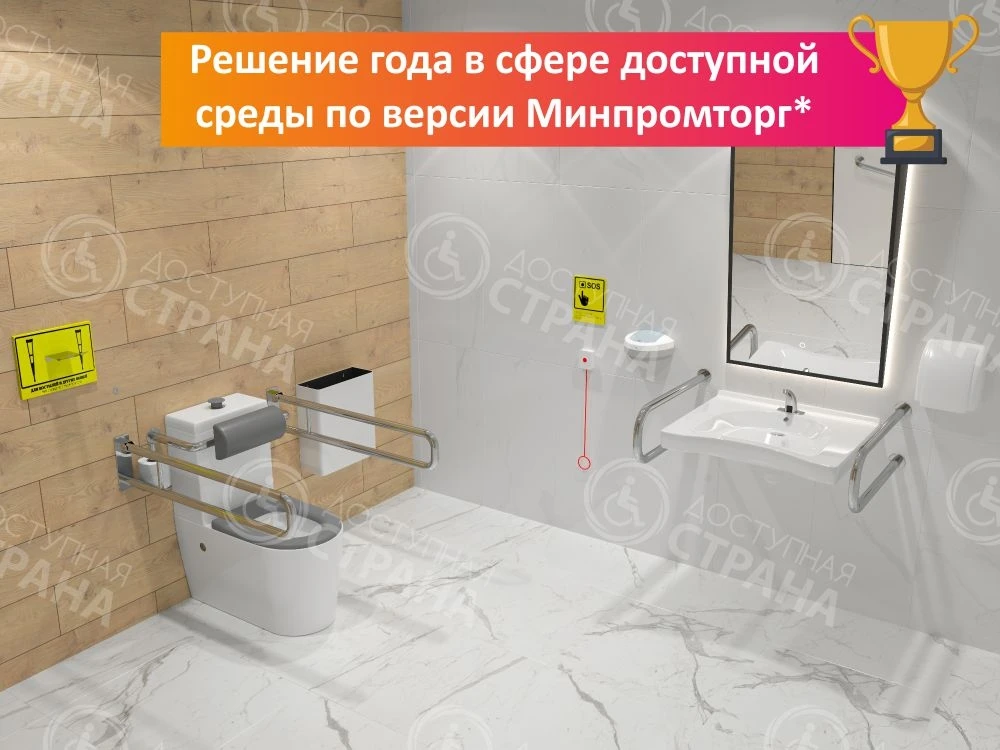В соответствии с действующими нормами СП 59.13330.2020 санузел должен быть адаптирован для инвалидов специализированным оборудованием (все необходимое учтено в наборе!).