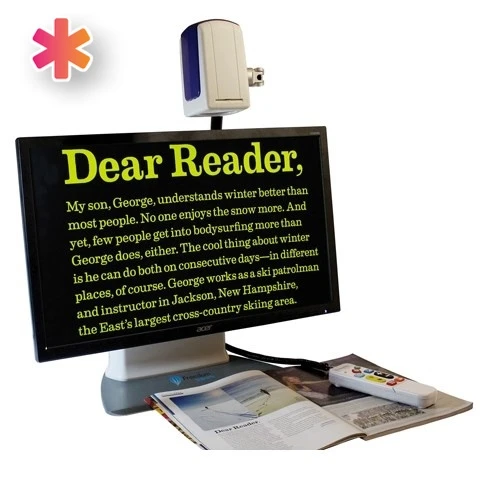 Автономный увеличить ONYX Deskset HD со стильным дизайном. Камера имеет крепление с тремя осями вращения. Это позволяет выбрать необходимые для обзора позиции.