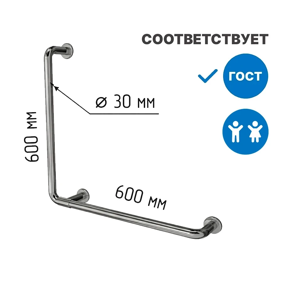 С учетом диаметра 30 мм поручень, в соответствии с требованиями ГОСТ, предназначен для установки в детских санузлах для инвалидов, где важно обеспечить удобный и безопасный обхват рукой с учетом детской анатомии.