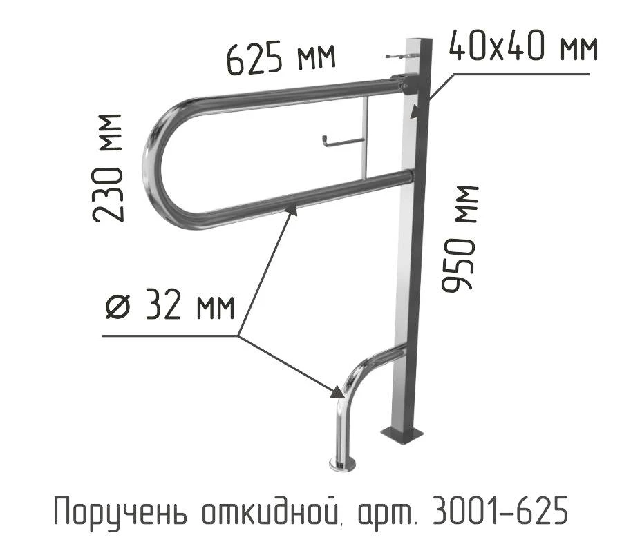 Поручень откидной на стойке с бумагодержателем 950x650х230 мм